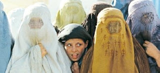 POR TRÁS DOS VÉUS: garota olha entre mulheres afegãs com burcas