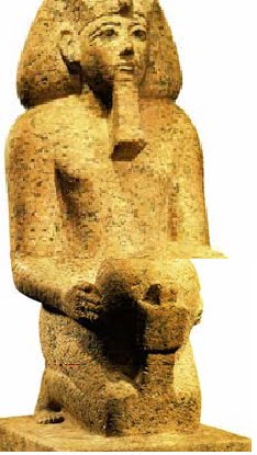 FIGURA 7 - Estátua em granito de Hatshepsut utilizando a coroa branca e em posição de oferenda. Forte aspecto masculino em sua representação (1460 a.C.)